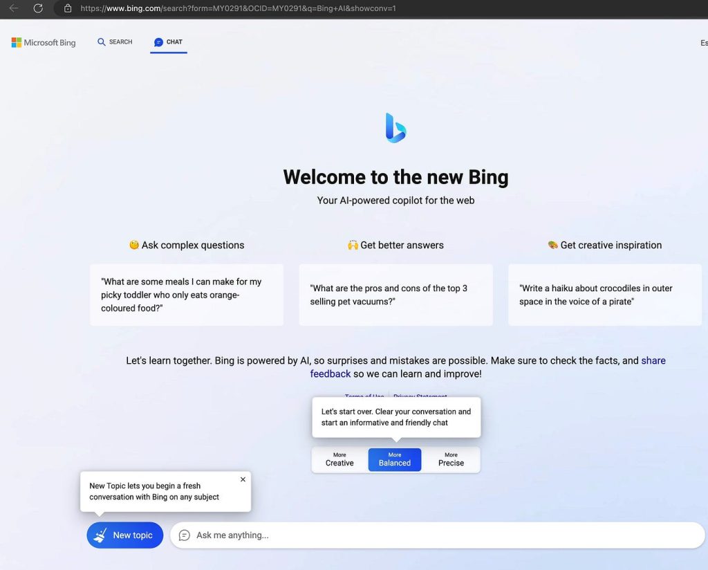 - Bing Chat: Ask questions and get conversational responses with citations from the web.
